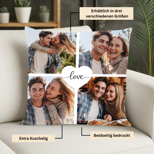 Personalisiertes Fotokissen mit 4 Bildern | Geschenk für Paare