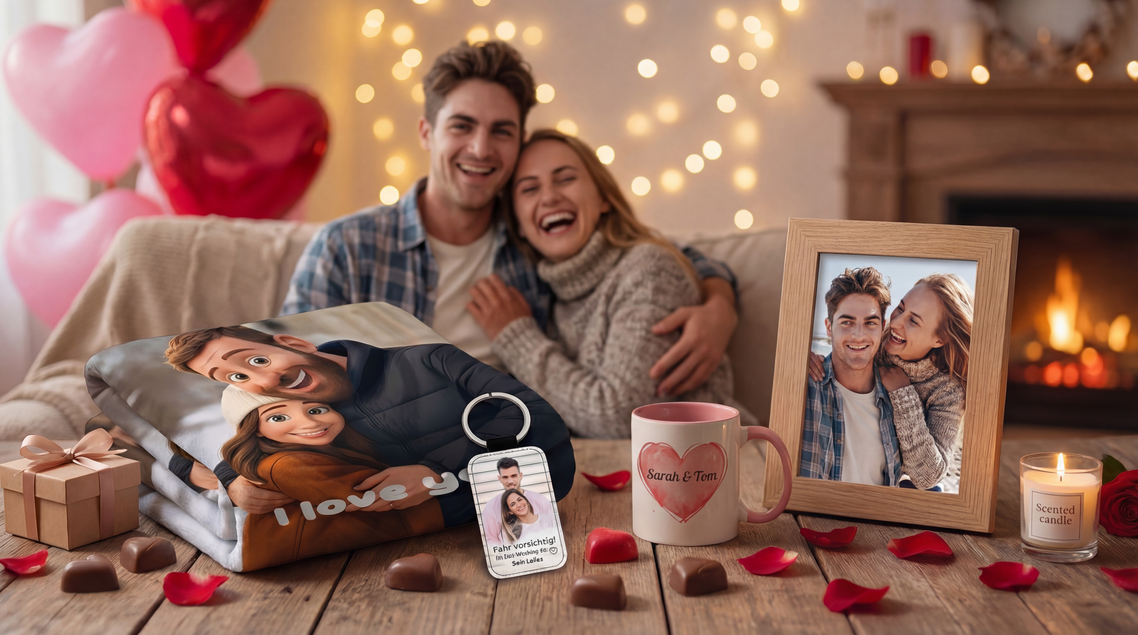 Personalisierte Kuscheldecke mit 4 Fotos | Geschenk für Paare