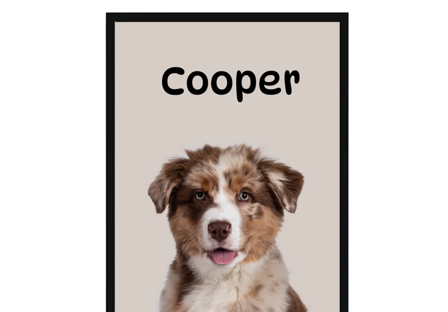 Dein Haustier ist ein Teil deiner Familie – warum also nicht ein wunderschönes personalisiertes Poster mit seinem Bild und Namen gestalten? Unser hochwertiges Haustier-Portrait bringt die Persönlichkeit deines Vierbeiners perfekt zur Geltung und wird zum stilvollen Highlight in deinem Zuhause.