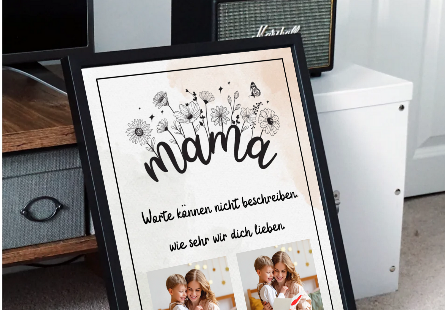 Mit diesem liebevoll gestalteten Poster schenkst du nicht nur ein Dekostück, sondern ein echtes Herzstück. Perfekt zum Muttertag – oder einfach, um mal „Danke“ zu sagen.