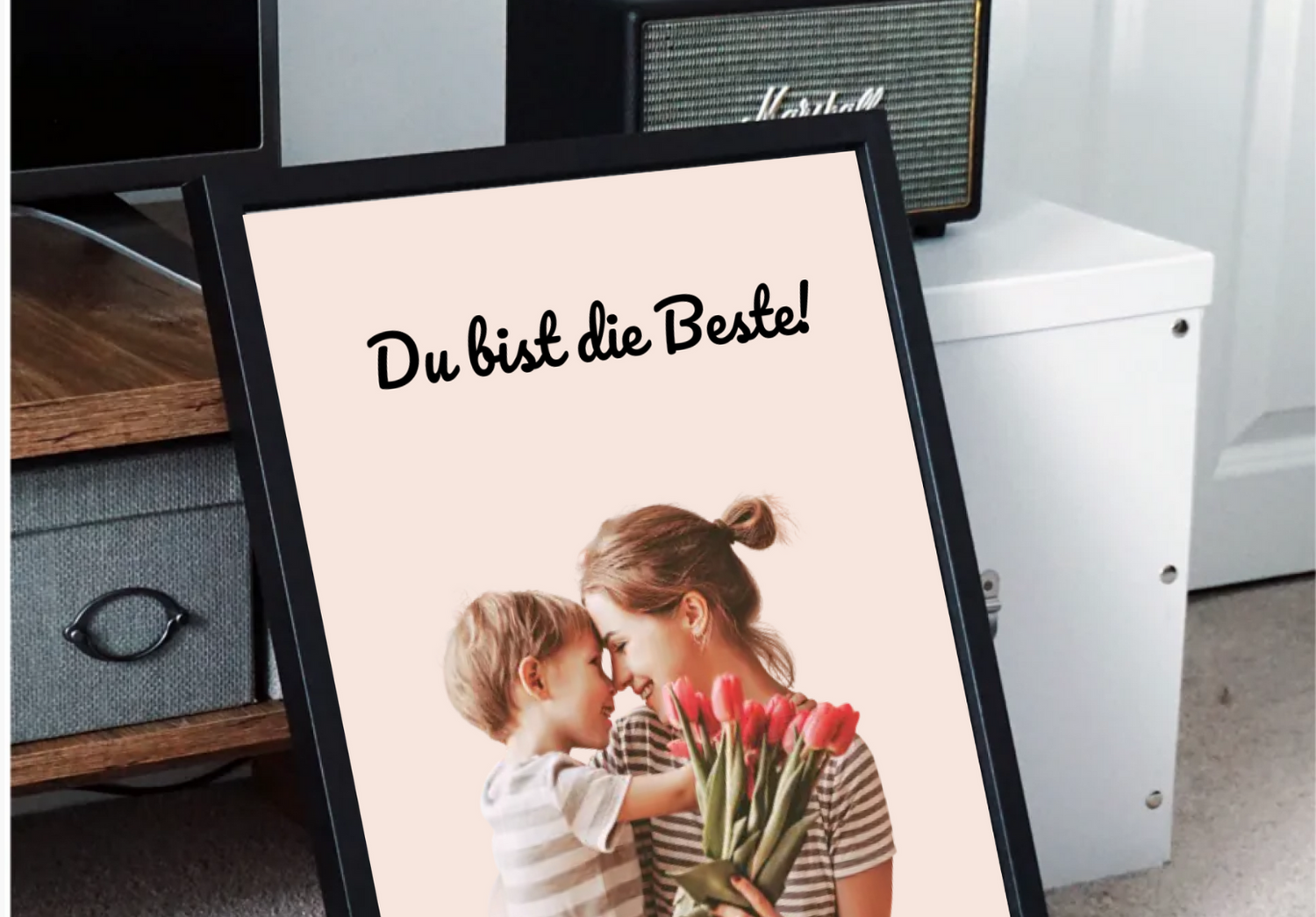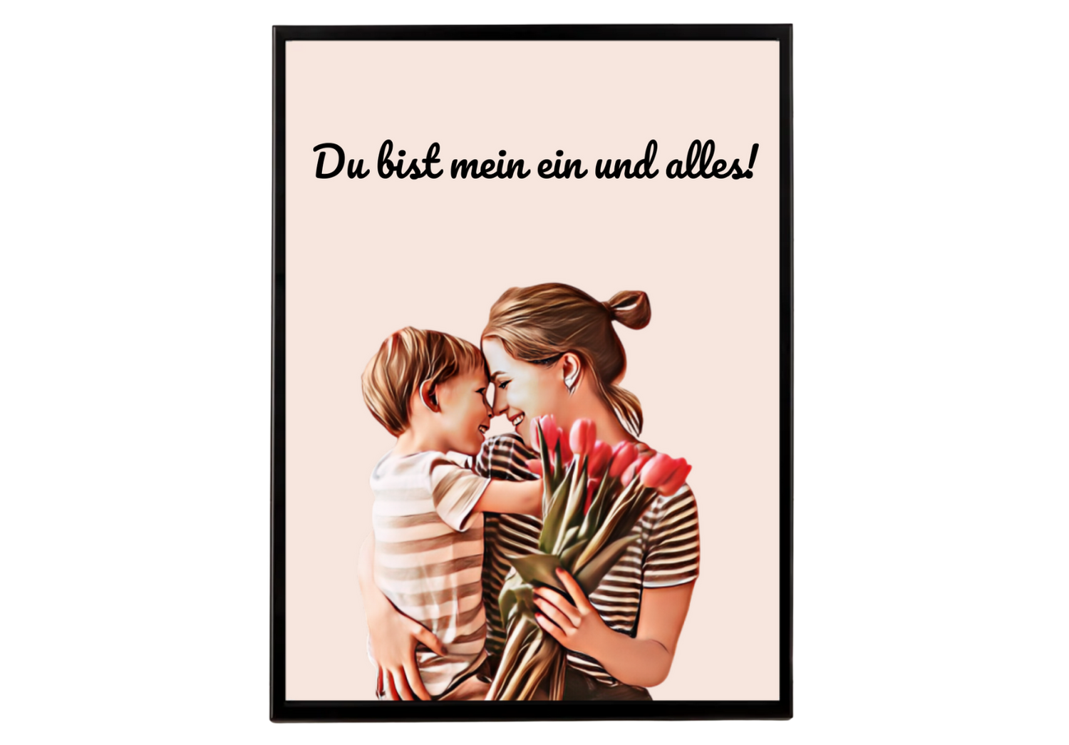 Du schickst uns einfach dein Lieblingsbild – und wir verwandeln es in eine liebevoll illustrierte Version, so wie auf dem Beispiel. Der Spruch bleibt fest integriert, das Motiv wird individuell angepasst. Das Ergebnis: ein einzigartiges Kunstwerk, das Emotionen sichtbar macht. Für das Wohnzimmer, die Küche oder das Schlafzimmer – überall dort, wo Mama es jeden Tag sehen kann.