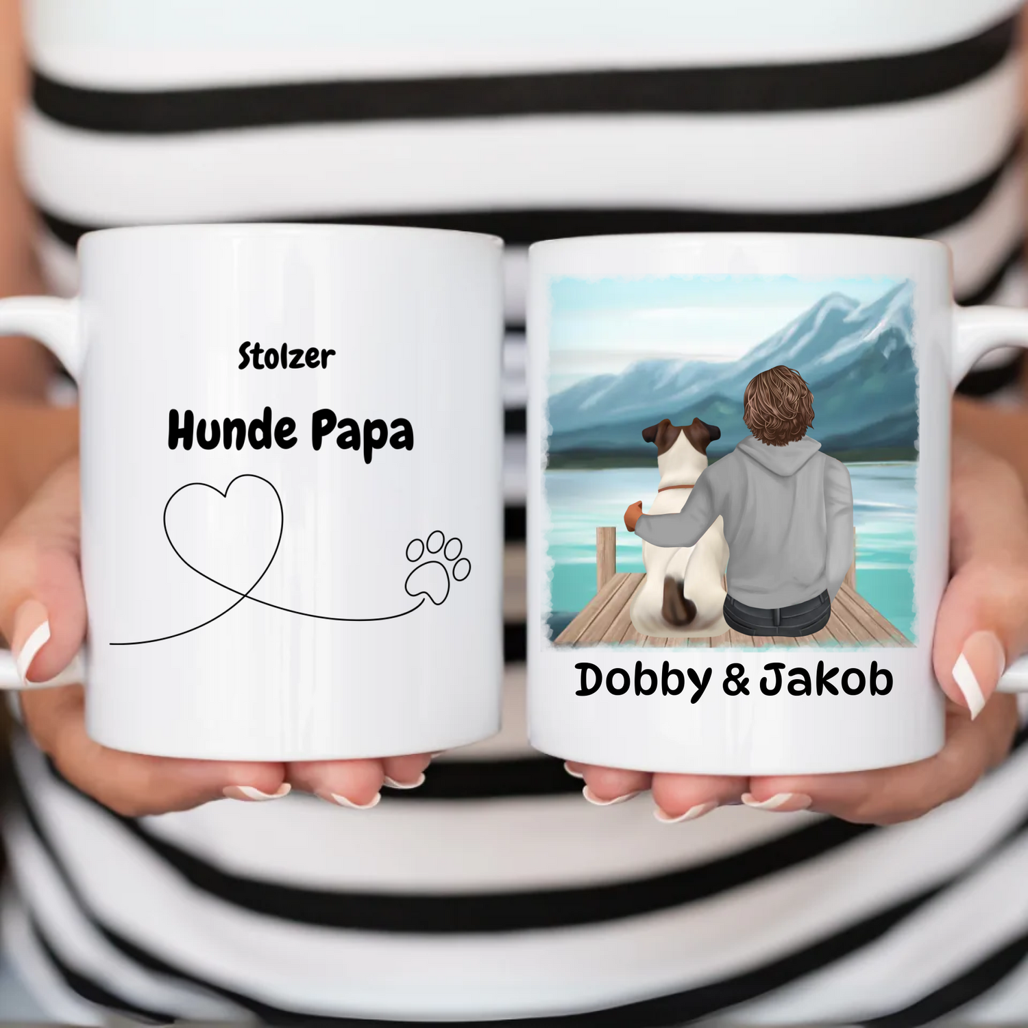 Gibt es etwas Schöneres, als jeden Morgen mit deinem treuen Vierbeiner an deiner Seite in den Tag zu starten? Mit unserer personalisierten Tasse kannst du euch beide jetzt verewigen – als süßes Motiv auf deinem neuen Lieblingsbecher!