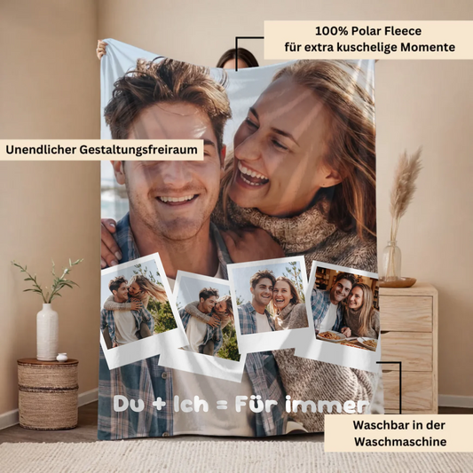 Personalisierte Kuscheldecke mit 4 Fotos | Geschenk für Paare